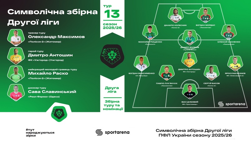 Sport Arena називає символічну збірну чергового туру Другої ліги сезону 2025/26. Якісний тур для підсилення з лави запасних: Дмитро Шостак (СК Вільхівці), Владислав Клименко (Ребел), Сава Славинський (Реал Фарма) відзначилися голами, Святослав Кермач (Буковина-2), Іван Романчук (Локомотив) – асистами, а Дмитро ...